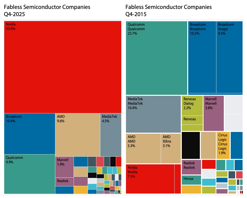 FABLESS-ЛИДЕРЫ: 2025 vs. 2015